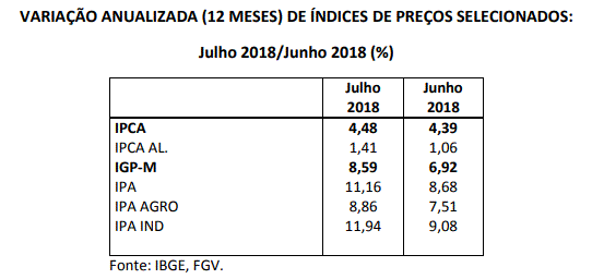 Em síntese, a inflação, tanto medida pelo IPCA como pelo IGP-DI, desacelerou em julho,