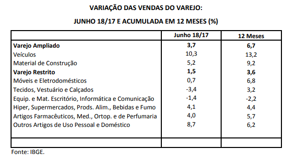 junho, as vendas do varejo restrito (que não considera veículos e material de construção)