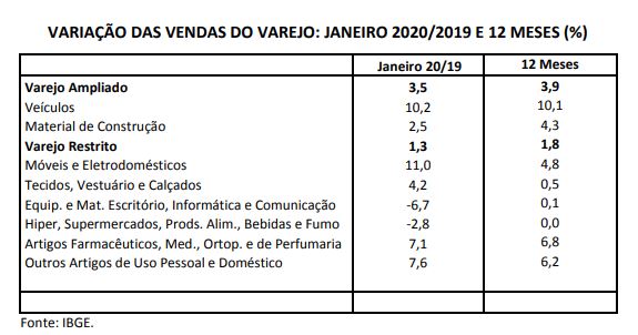 Em síntese, as vendas do varejo começaram o ano mantendo a marcha lenta observada no final do ano passado. A perspectiva para os próximos meses é incerta, pois dependerá da duração e extensão do coronavírus em nosso País, que levou ao fechamento do comércio. De todo modo, espera-se uma contração acentuada do volume de vendas, que poderia ser atenuada, em parte, pelo desempenho provavelmente positivo dos ramos supermercadista e farmacêutico, e pelas medidas econômicas compensatórias anunciadas pelas autoridades econômicas.