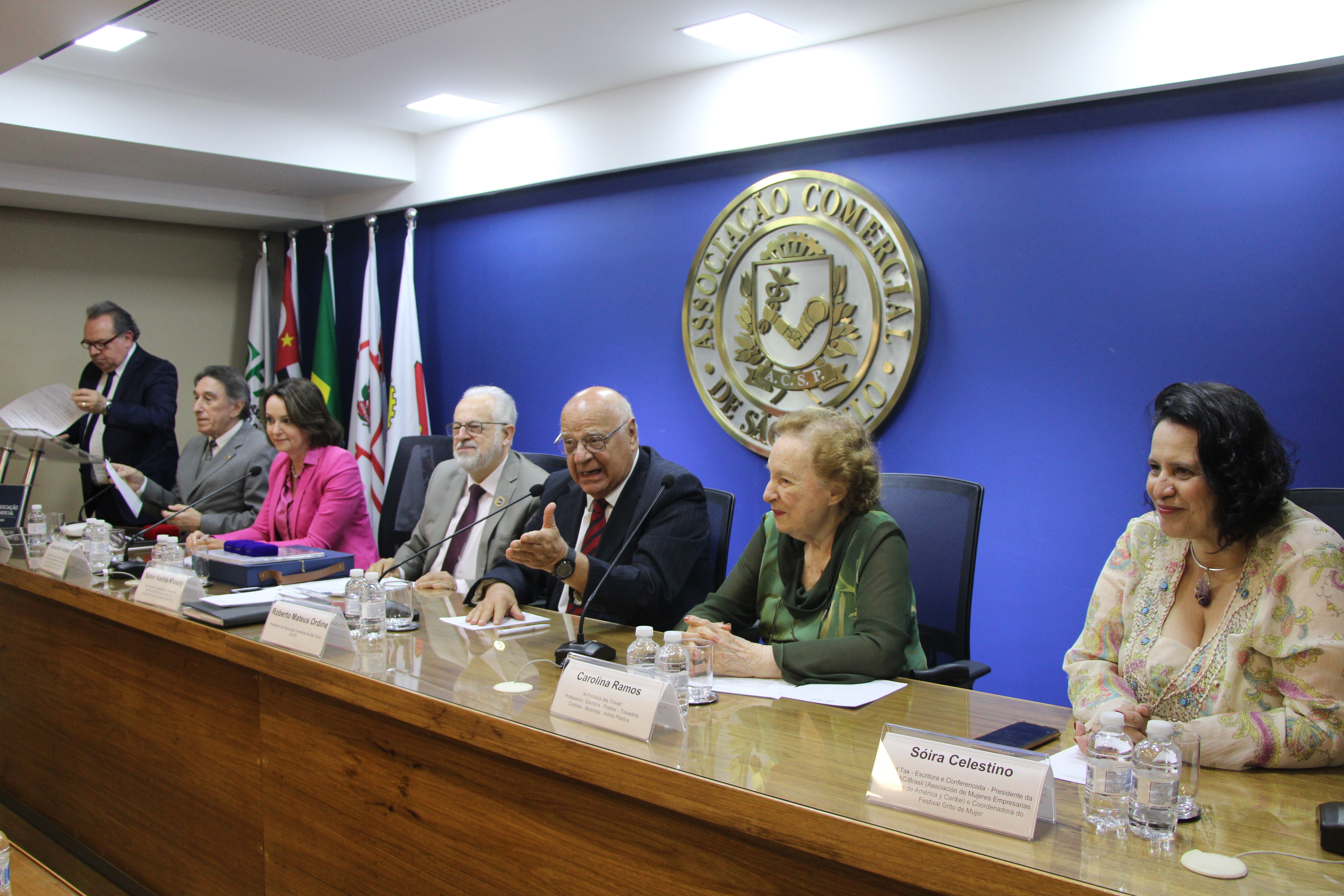 As homenageadas Carolina Ramos, a “Princesa das Trovas”, Alessandra Andrade, presidente da SP Negócios, e Sóira Celestino, do Festival Grito de Mujer!, foram convidadas a discursar sobre suas biografias e projetos