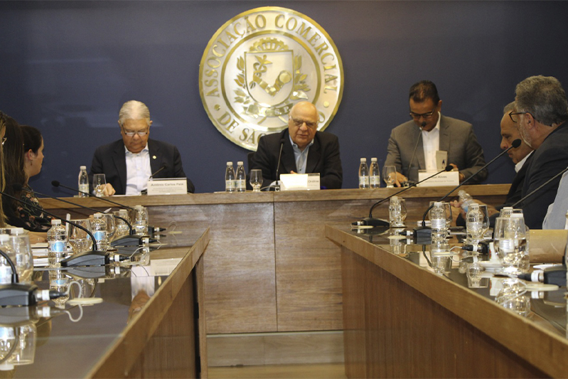 Estiveram presentes na reunião Roberto Mateus Ordine, presidente da ACSP; Humberto Gouveia, coordenador do COS; e membros do Conselho
